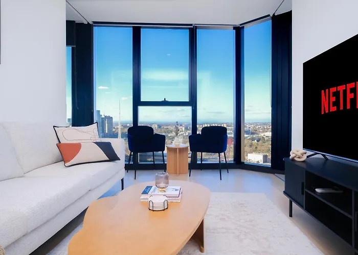 Nabízející plavecký bazén, apartmán Views, Pool & Spa, Gym, Modern Living je umístěn 3 km od Jam Factory. Akvárium v Melbourne najdete ve vzdálenosti 1 km od ubytování, a snadno se dostanete i do Greek Orthodox Church of St. Eustathios.
